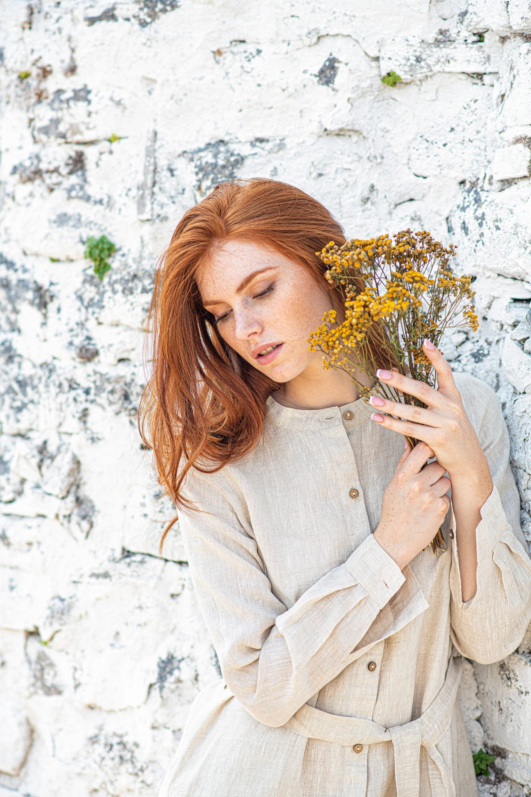 ♠ The classic linen piece that everyone must have in their wardrobe. This long sleeved shirt dress has front buttoning, side slits and removable belt. Made of 100% linen, this elegant creation is featured in several classic colors.