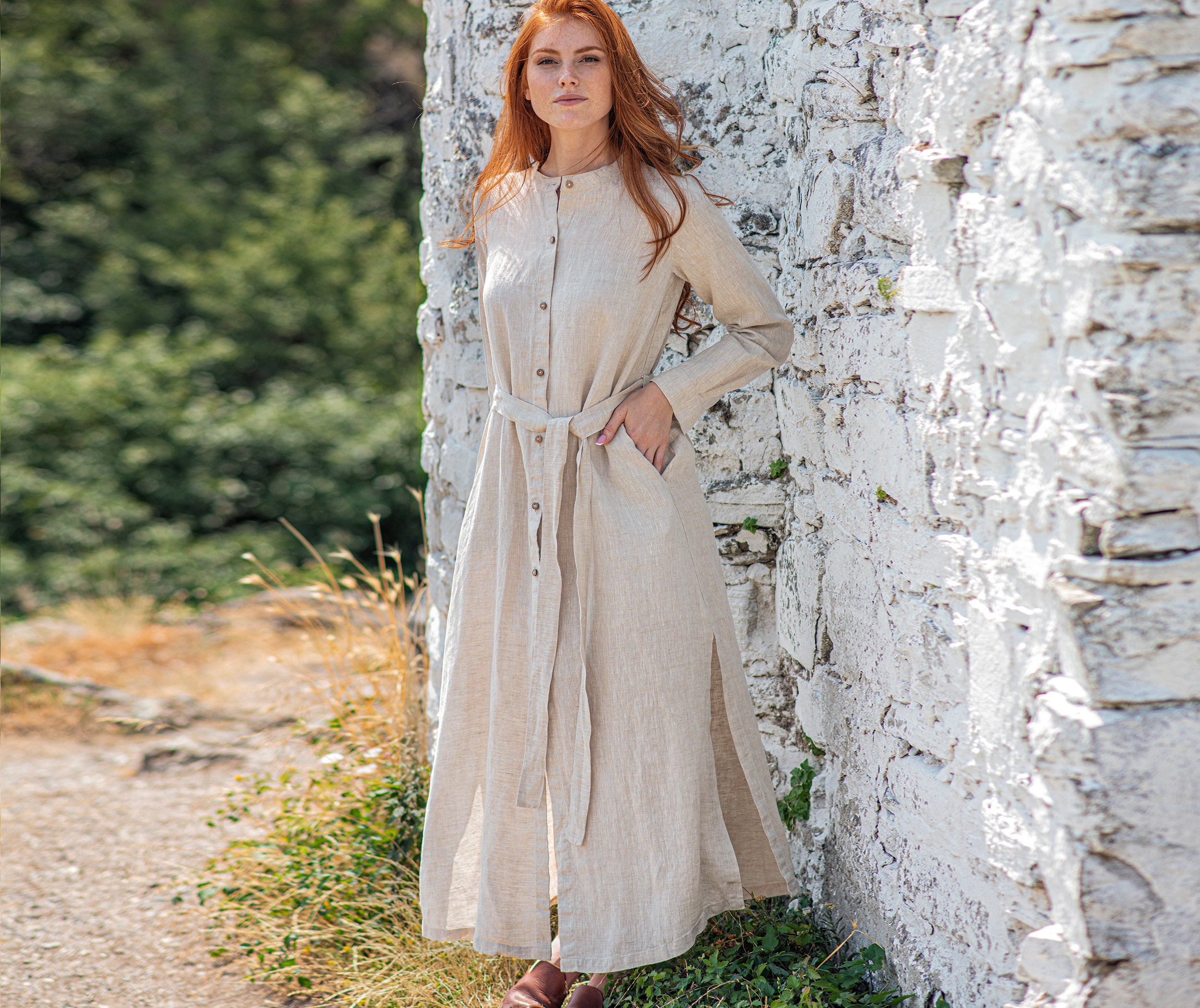 Linen Button Down Dress, Women Linen Dress, Long Linen Shirt Dress