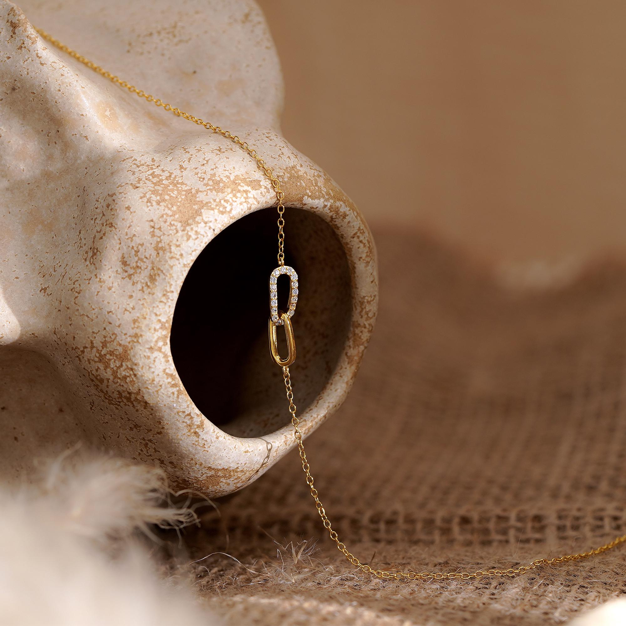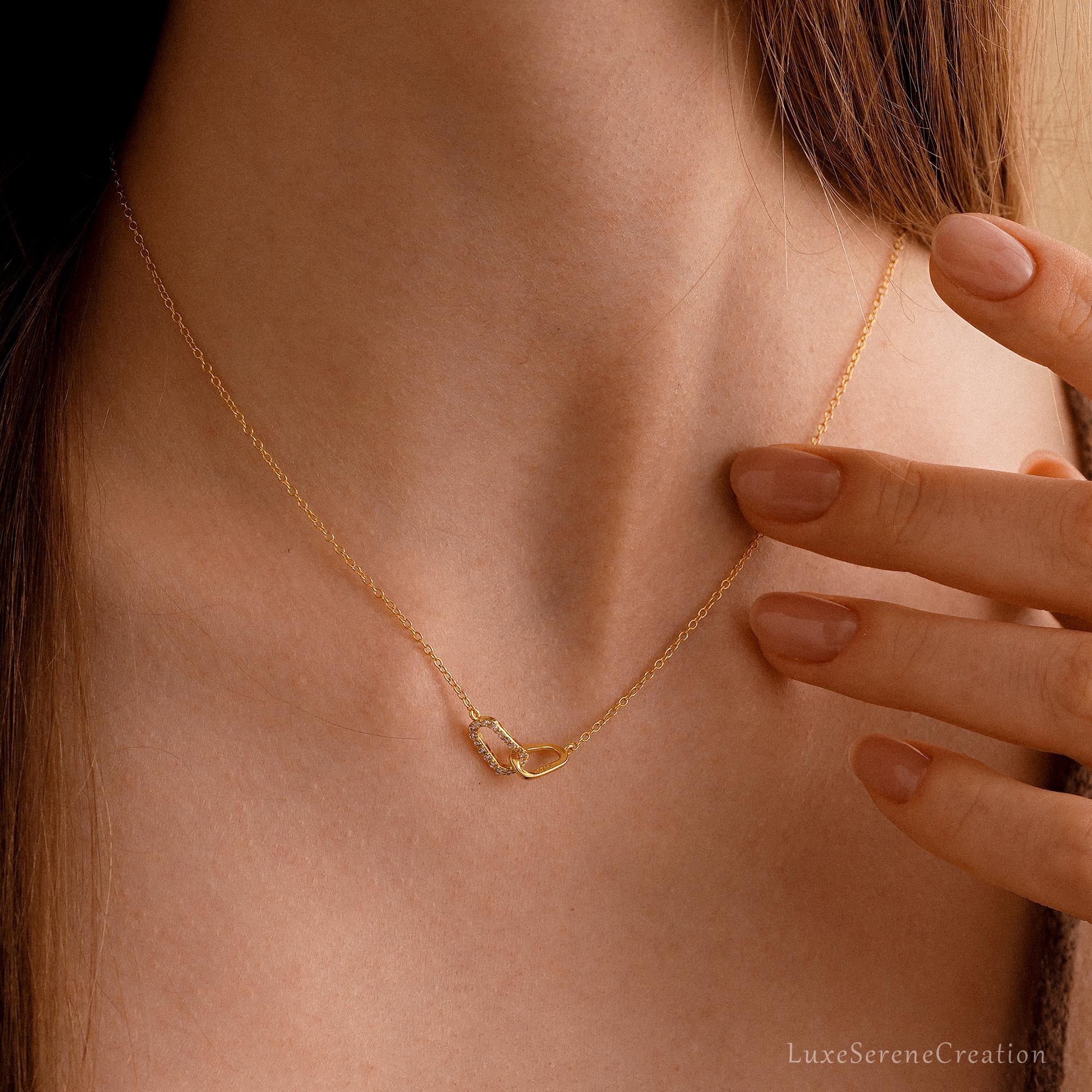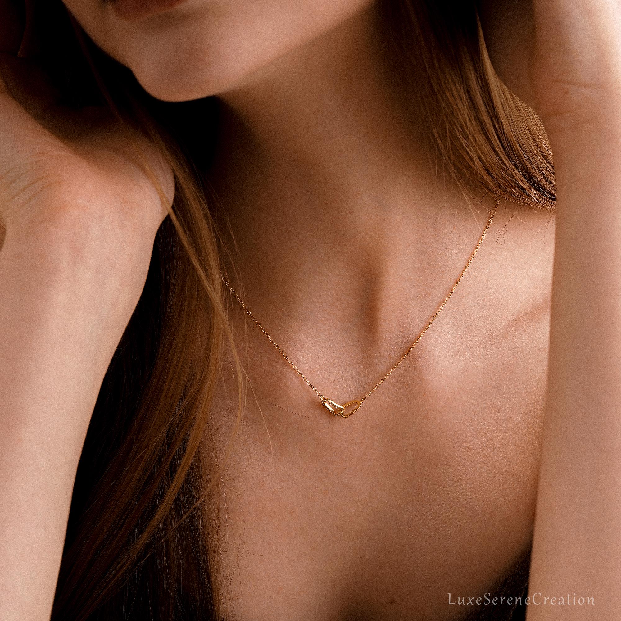 Paperclip Chain Necklace, Minimalist Cross-Over Necklace, Double Buckle Sterling Silver Pendant, Birthday Gift, Mothers Day Gift for Her